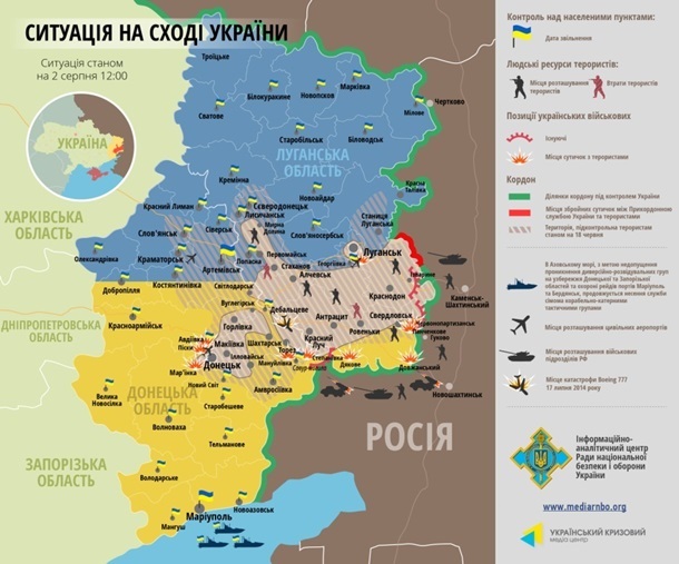 Карта АТО за 2.8.2014