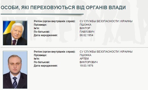 СБУ оголосила в розшук сина екс-Генпрокурора Артема Пшонку. Інформація про розшук оприлюднена на сайті МВС у розділі “Особи, які переховуються від органів прокуратури”.