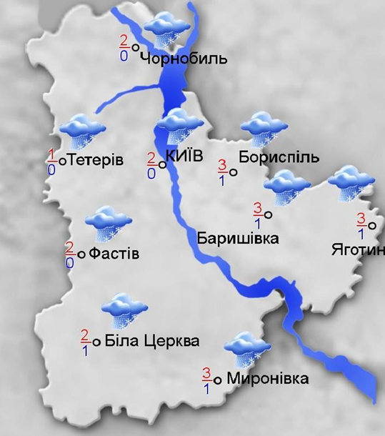 У Києві 1 грудня буде хмарно, мокрий сніг і дощ. На дорогах також місцями ожеледиця, вдень місцями налипання мокрого снігу.
