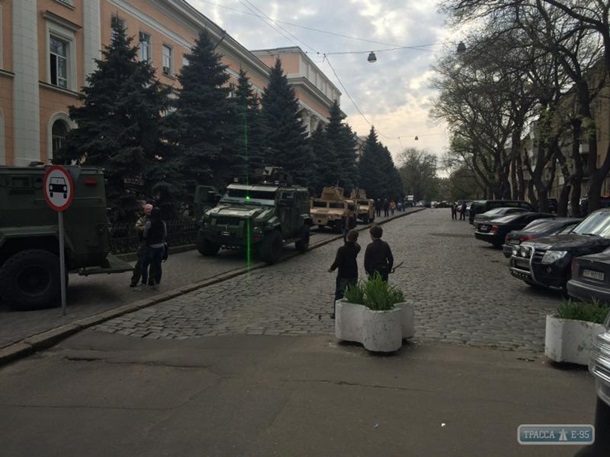 “До Одеси прибули досвідчені фахівці центрального управління СБ України, в тому числі і ті, які беруть участь у АТО. Очолює їх керівник АТО при СБУ. З метою підвищення ефективності та мобільності проведення контртерористичних заходів із зони АТО в місто прибула бойова техніка спецпідрозділів Служби” , – сказано в повідомленні СБУ.