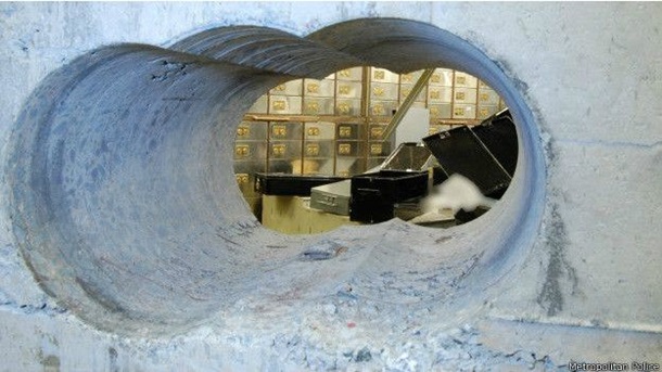Потрапивши всередину, грабіжники проникли в шахту ліфта, спустились по ній, після чого просвердлили велику дірку в стіні і розкрили сейфи.